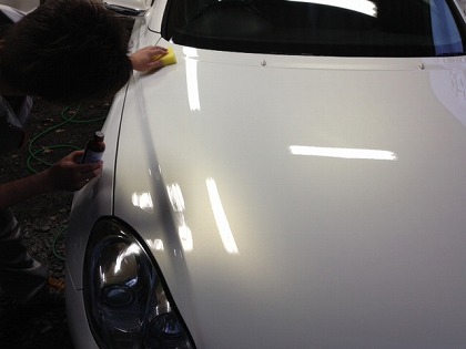 ボンネット、トランク等は再度コーティング剤を塗布し拭き上げます。