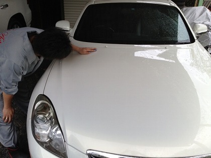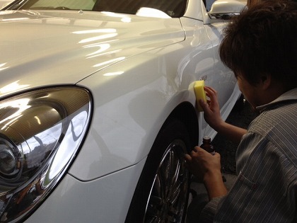 ボンネット、トランク等は再度コーティング剤を塗布し拭き上げます。