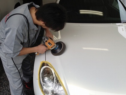 微粒子コンパウンドで塗装面をフラットに仕上げます。