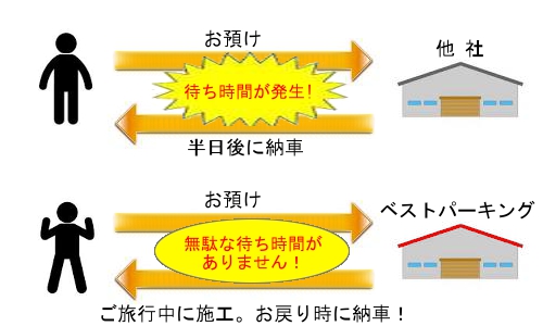 当店にてコーティングを実施して頂きましたお客様は、お出かけ中の駐車料金が無料となります。